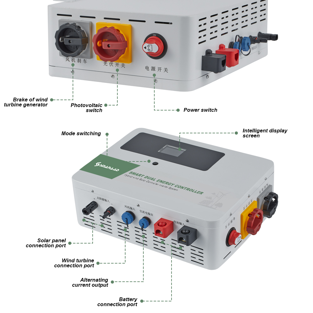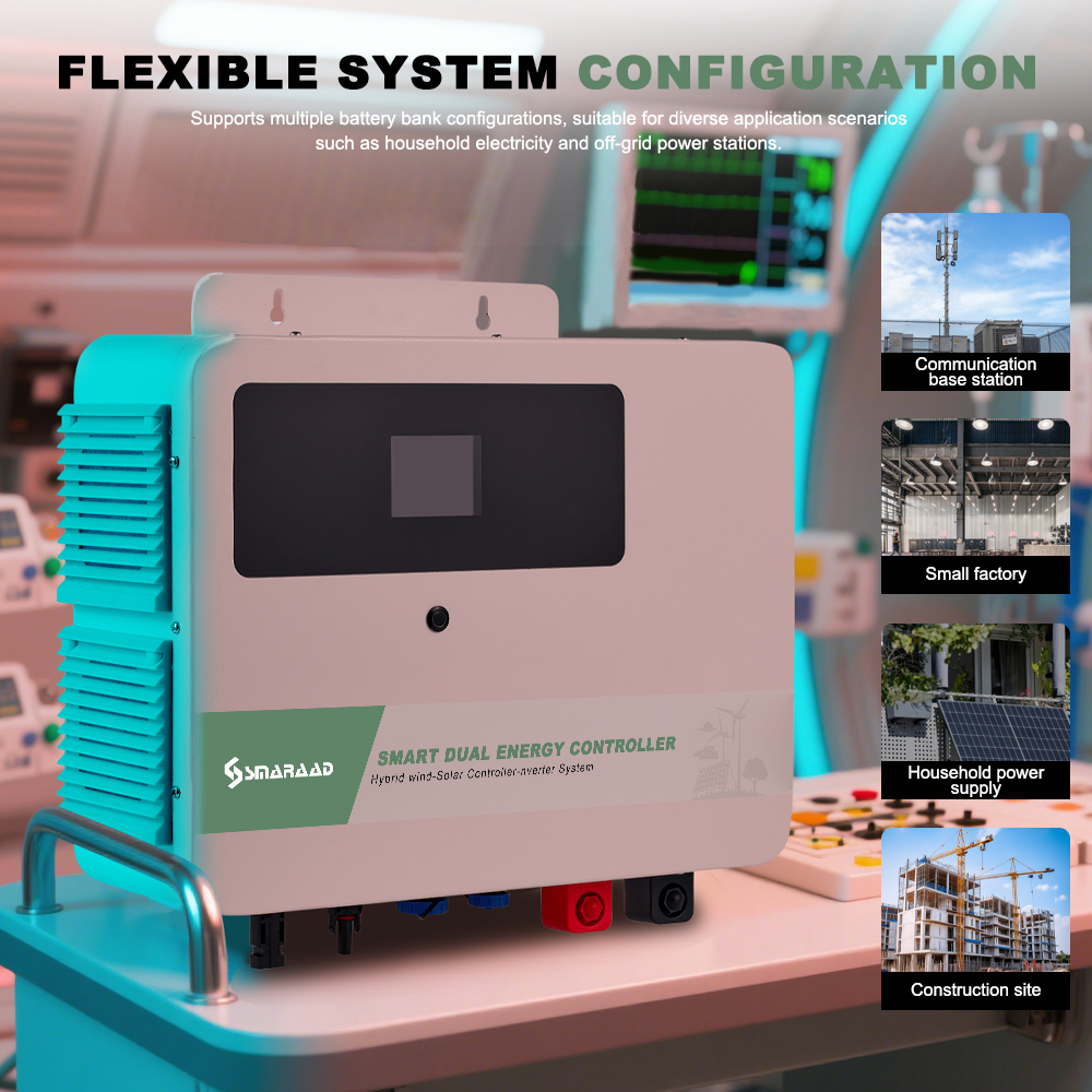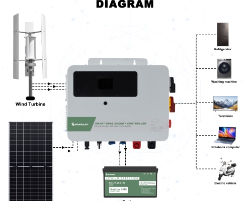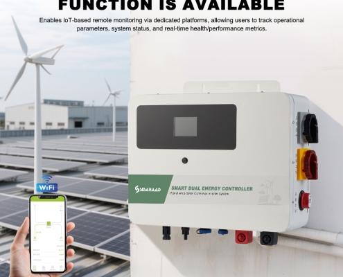 The DH Series All-In-One Wind-Solar Hybrid High-Frequency Inverter Controller is a fully integrated, customizable solution that combines wind power generation, photovoltaic (PV) power generation, and inverter systems into a single, compact unit. By leveraging intelligent control and high-frequency inverter technology, it achieves efficient energy conversion and management, enabling coordinated optimization of wind and solar energy. This significantly enhances the reliability and cost-effectiveness of renewable energy systems, making it ideal for residential off-grid power, remote power stations, and a wide range of off-grid applications.