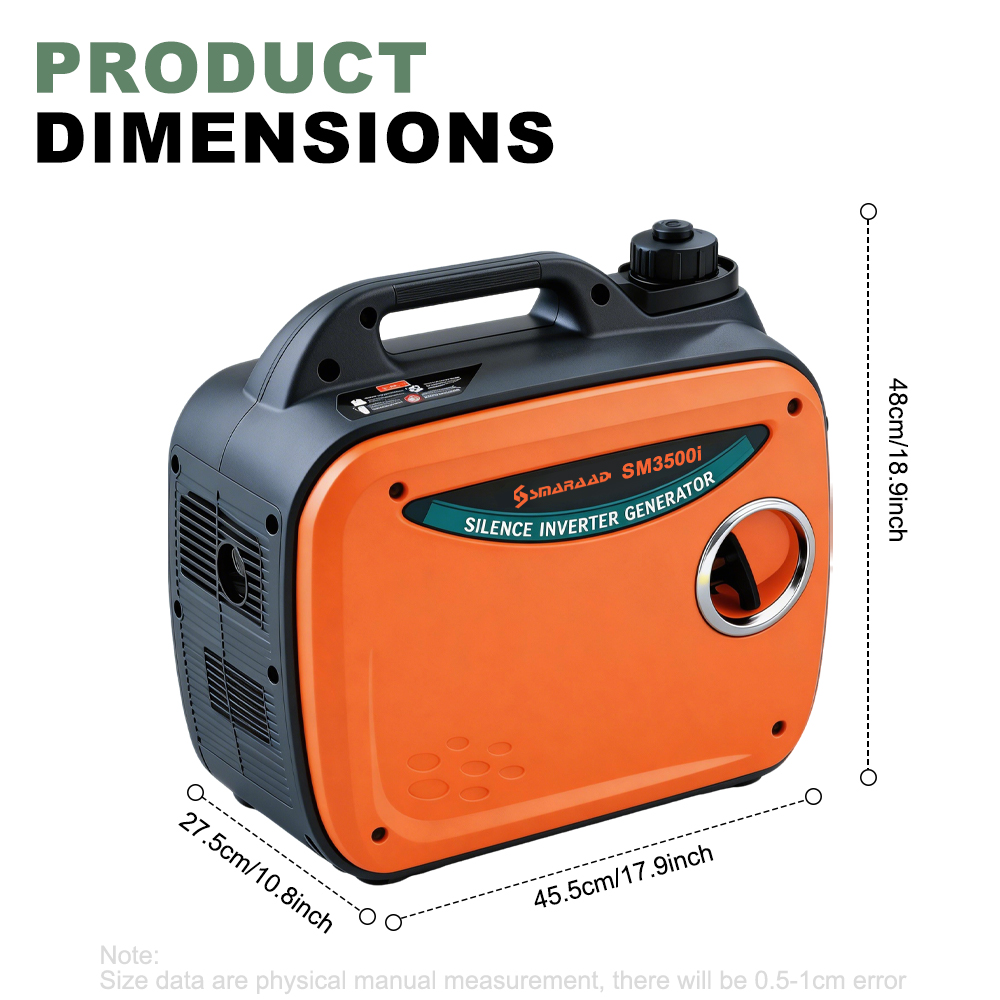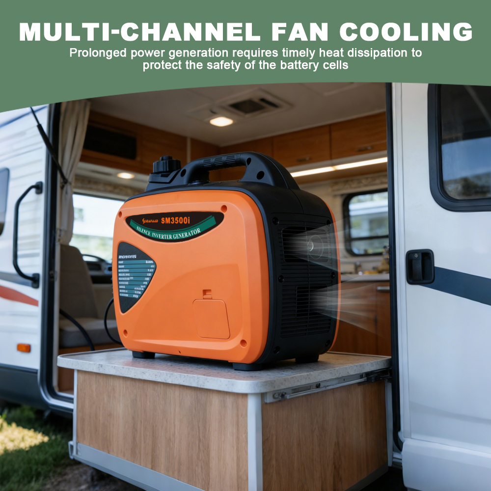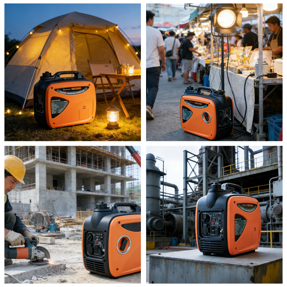The SM3500i is a compact, lightweight portable inverter gasoline generator engineered for reliable, quiet power delivery in any scenario. Delivering a stable 2000W rated output (2200W peak), it features a four-stroke engine, ultra-low noise operation , and versatile output ports including 230V AC, 12V DC, and USB charging. Designed for portability and durability, it is the ideal power solution for camping trips, RV adventures, construction sites, and home emergency backup—with parallel capability to double your power output when needed.