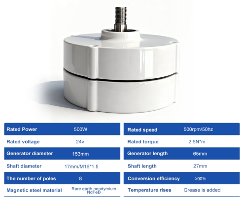 - Optimized 750 RPM Operation: Tuned for low-to-moderate rotational speeds, making it perfect for pairing with 1–2m diameter wind turbine rotors or micro hydro setups with moderate flow rates.
