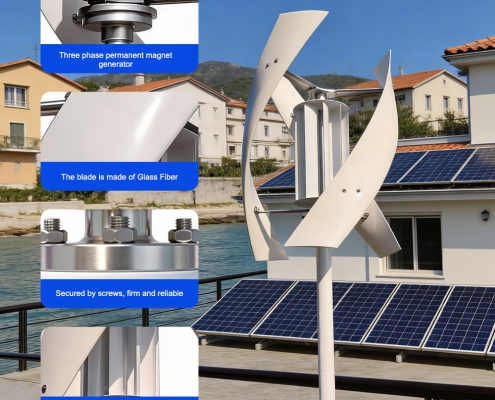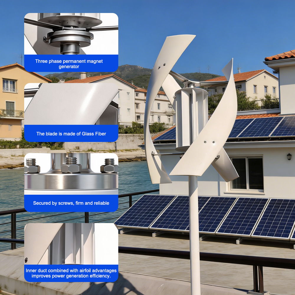 The SX5 is a high-performance vertical axis wind turbine designed for residential, off-grid, and hybrid wind-solar systems. With a rated power of 2000W and a maximum power of 2100W, it features a three-phase permanent magnet generator, low cut-in wind speed, and a compact vertical design for quiet, reliable operation. Engineered for durability and safety, it is the ideal choice for home power backup, remote cabins, RVs, and small renewable energy projects.
